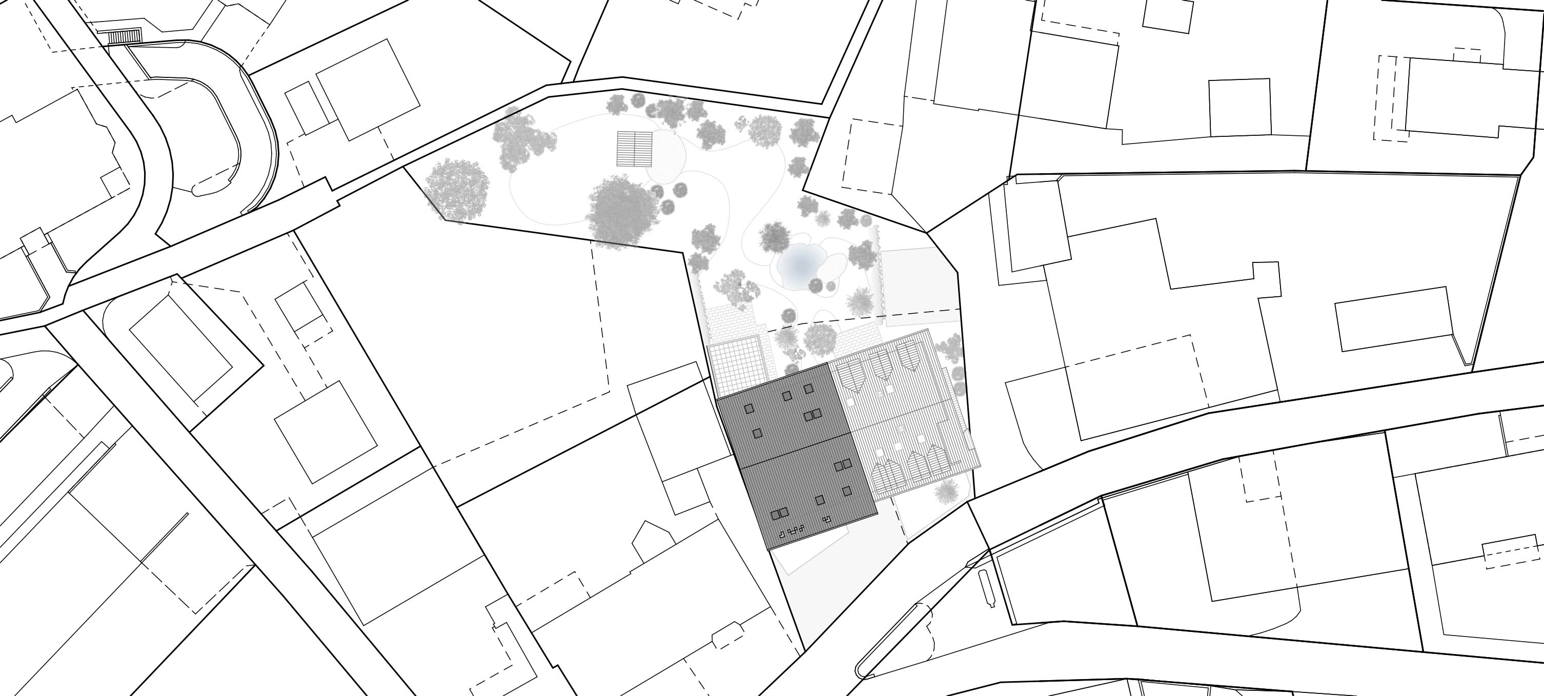 Besonders aussergewöhnlich ist die Lage der Parzelle. Das Leben inmitten des Dorfzentrums, wo sämtliche Angebote bequem zu Fuss erreichbar sind, und gleichzeitig eine bemerkenswert, grosse Gartenlandschaft im rückwärtigen Bereich. Obstbäume, ein kleiner Weiher und weitläufige Grünflächen schaffen einen idyllischen Aussenraum und bieten einen hohen Erholungswert.