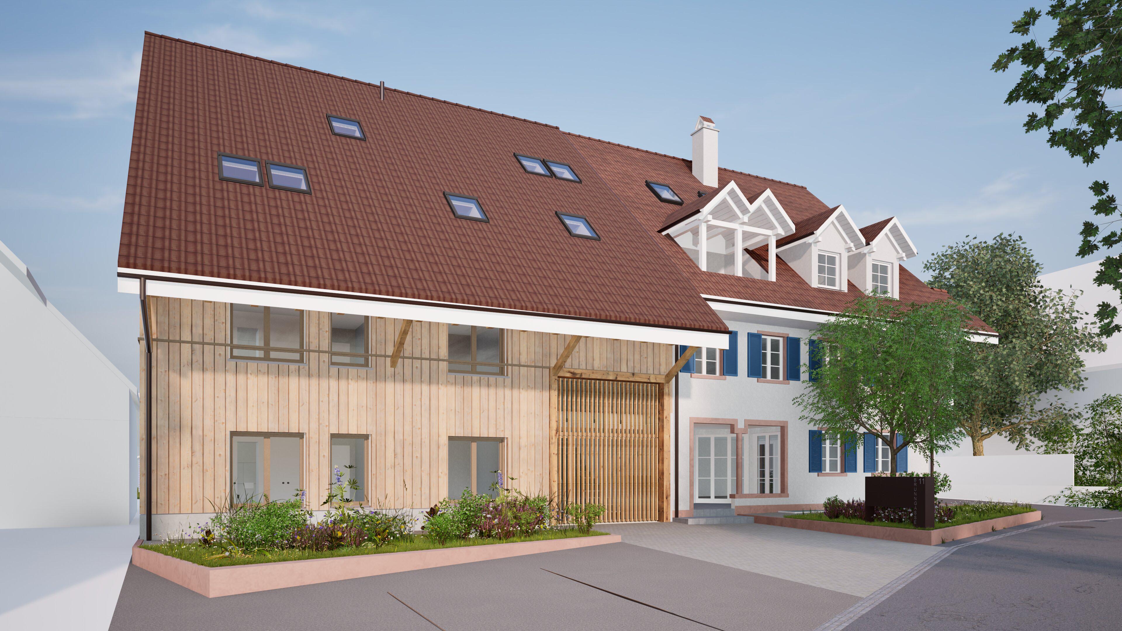 Mitten im historischen Zentrum der Gemeinde Möhlin entsteht ein Projekt, das den Bestand respektvoll weiterentwickelt und gleichzeitig neuen, hochwertigen Wohnraum schafft. Das Grundstück liegt in der Kernzone 1 und umfasst ein bestehendes Wohnhaus mit zwei Wohnungen sowie einem angrenzenden Ökonomieteil, der im Rahmen des Projekts als Ersatzneubau erneuert wird.